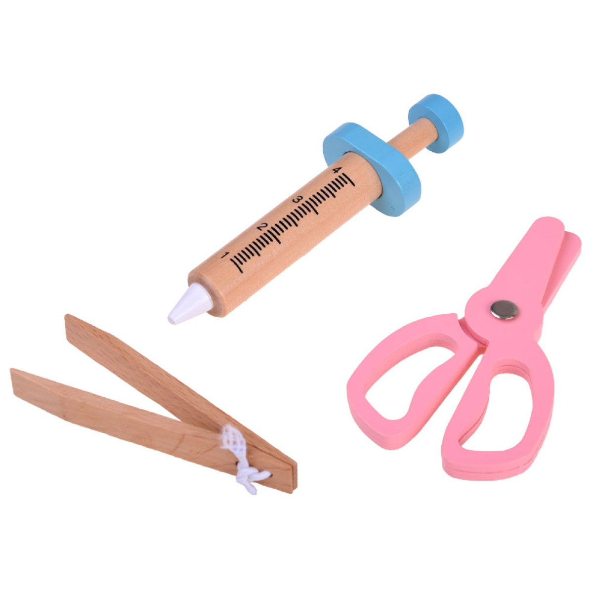 Väike arsti mängukomplekt puidust tarvikutega