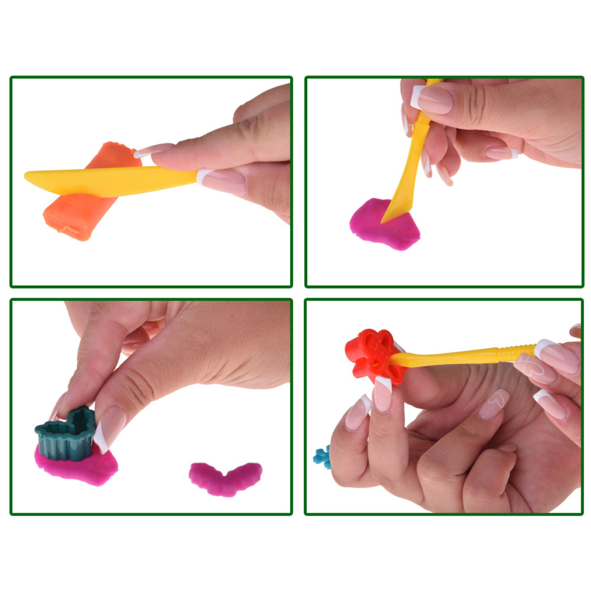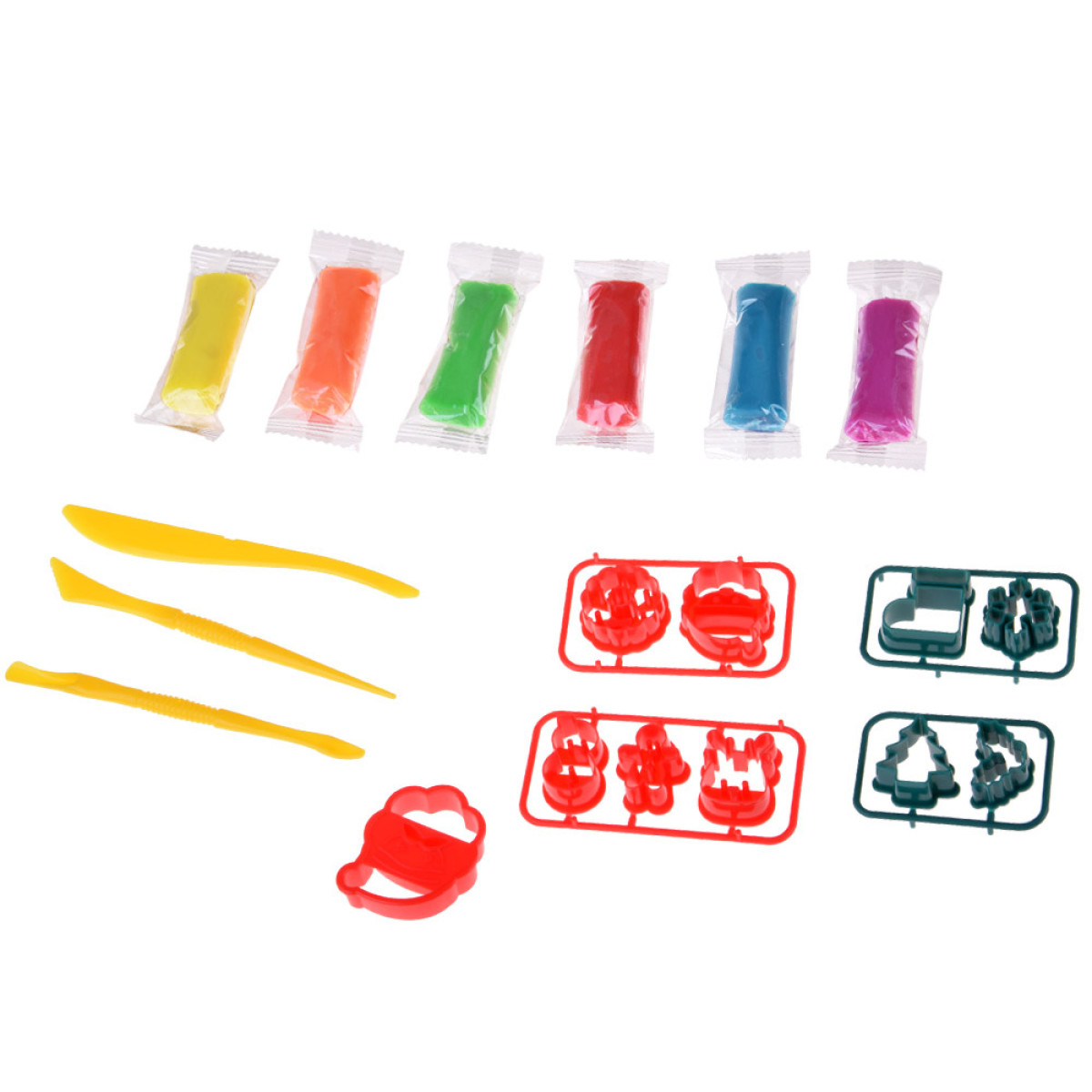 Temaatilised vormid jõuluteemalistes kujundites võimaldavad valmistada erilisi figuure – lapsed saavad luua oma lumememme, jõulupuu või tähe ja kaunistada neid vastavalt oma soovile. Komplektiga on kaasas ka kolm ohutut plastikust nuga, mis aitavad täpselt eemaldada üleliigset materjali ja luua üksikasjalikke elemente.