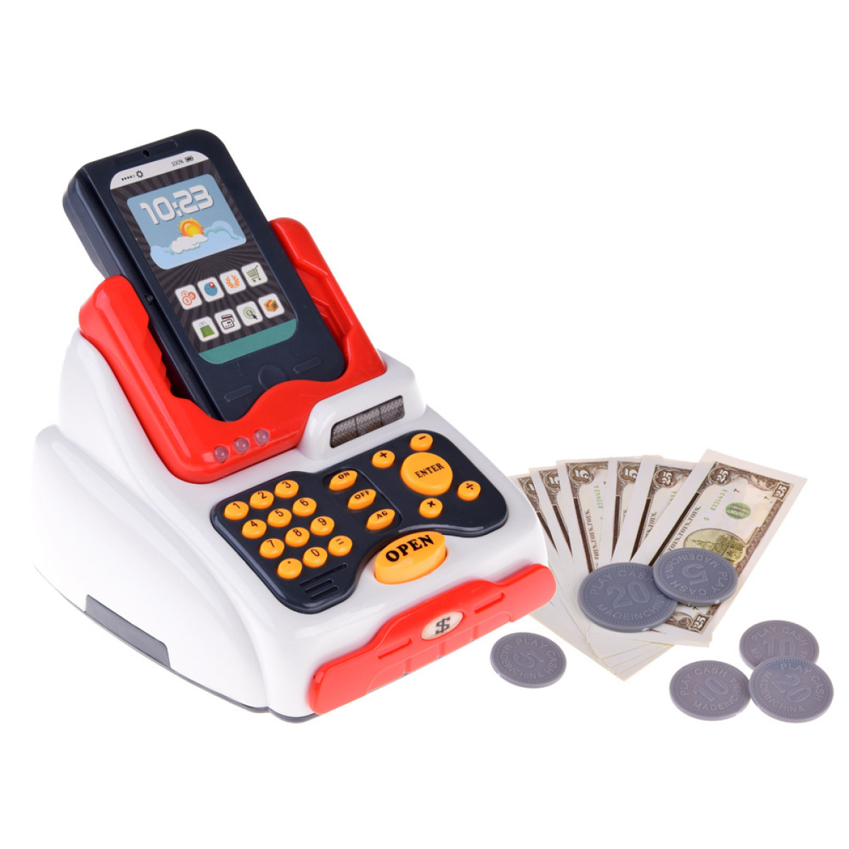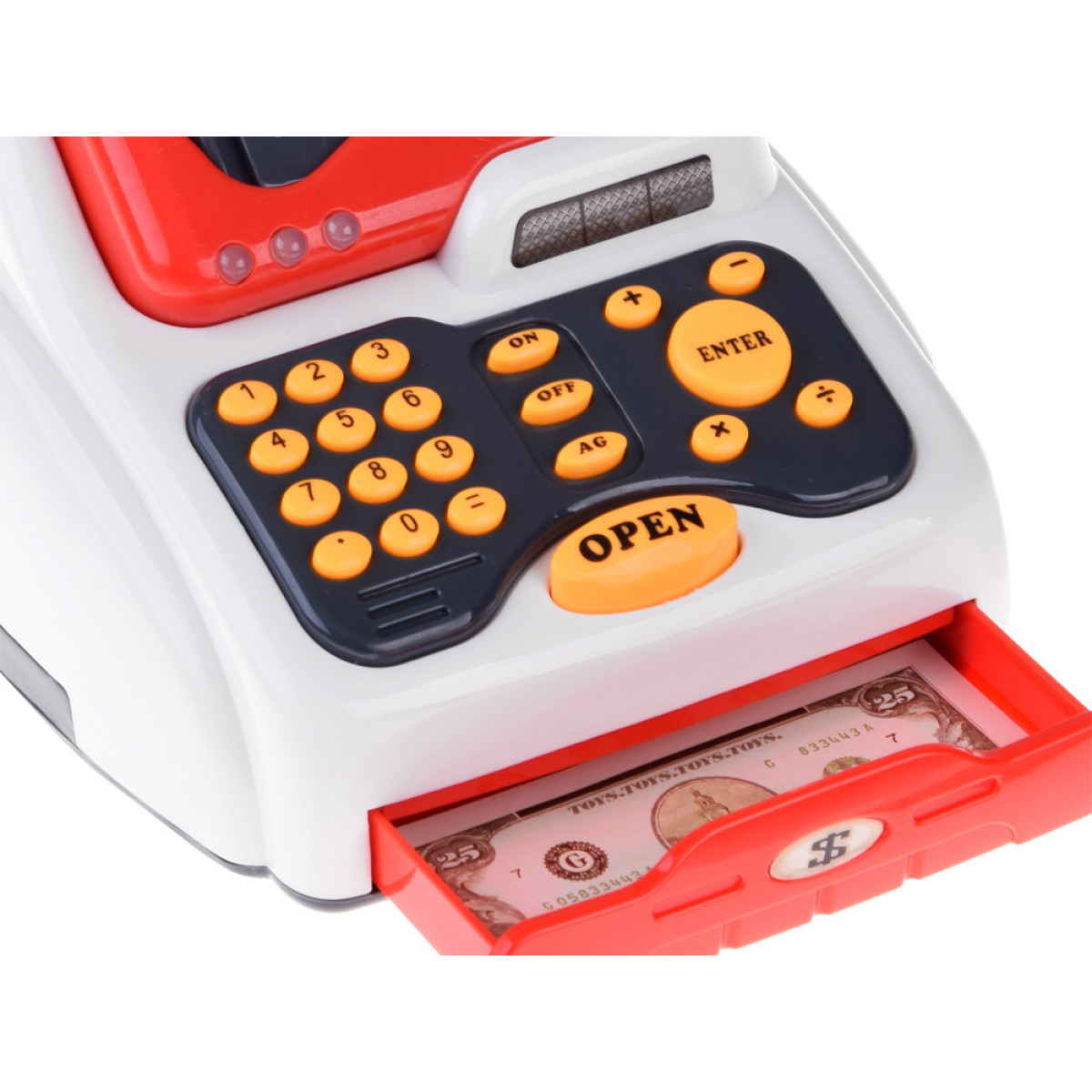 - Kassaaparaat - heliefekt klahvide vajutamisel ja kolm värvilist LED-tuld. Rahasahtel avaneb nupu abil.