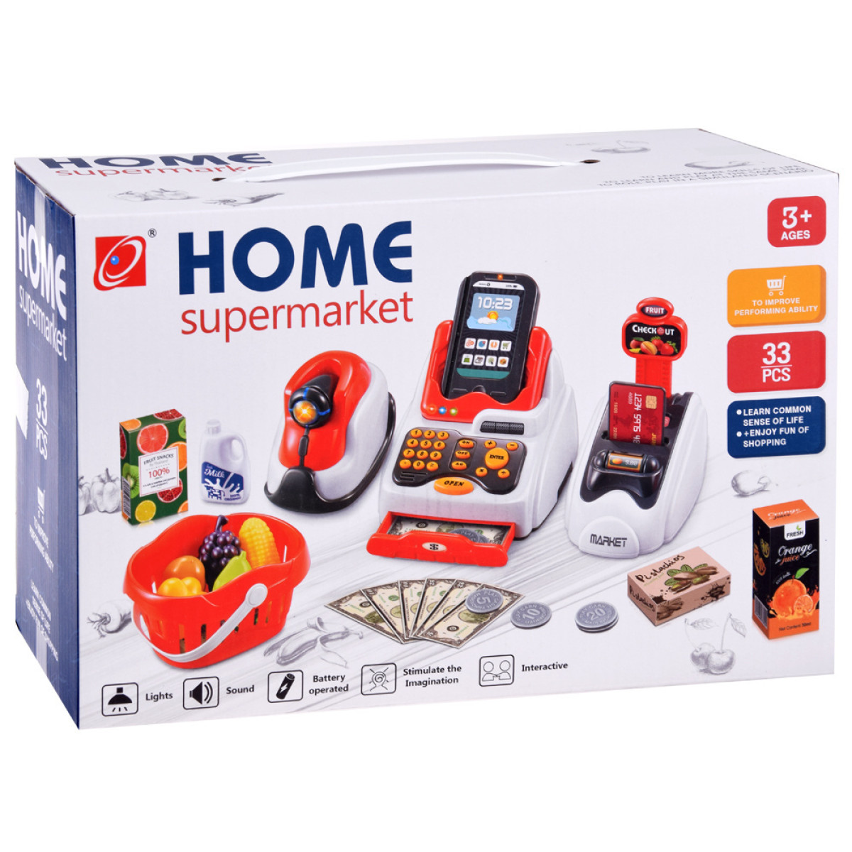 Mini Market on täielik väike müüja komplekt kodus, lasteaedades või poes mängimiseks. Komplekt sisaldab kassat, kaardilugejat, skannerit, kõik koos heli ja valgusefektidega. Väikese ettevõtja, müüja mängimine on alati põnev lastele. Lapsed naudivad müümise ja ostmise mängimist ning sellise professionaalse komplektiga muutub mäng väga harivaks.