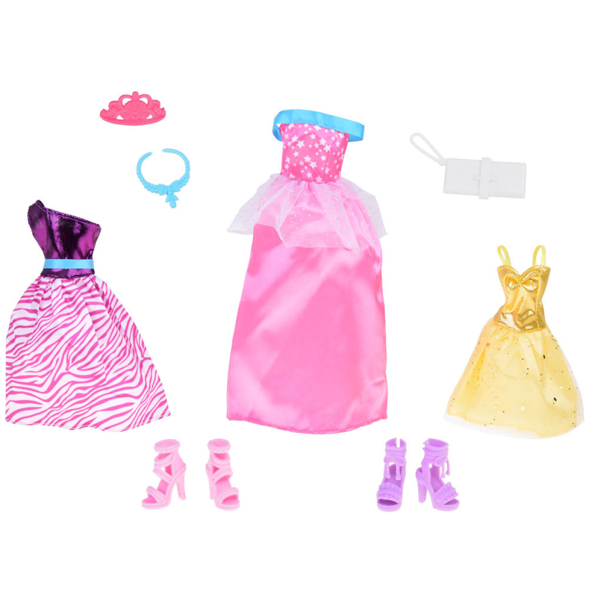 Moodne nukkude riiete komplekt: kleidid, ehted ja aksessuaarid ZA5413