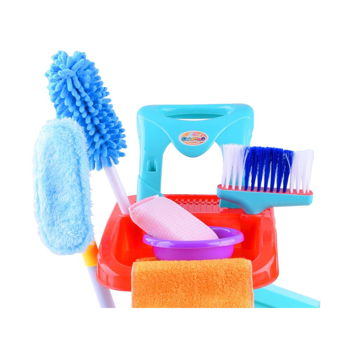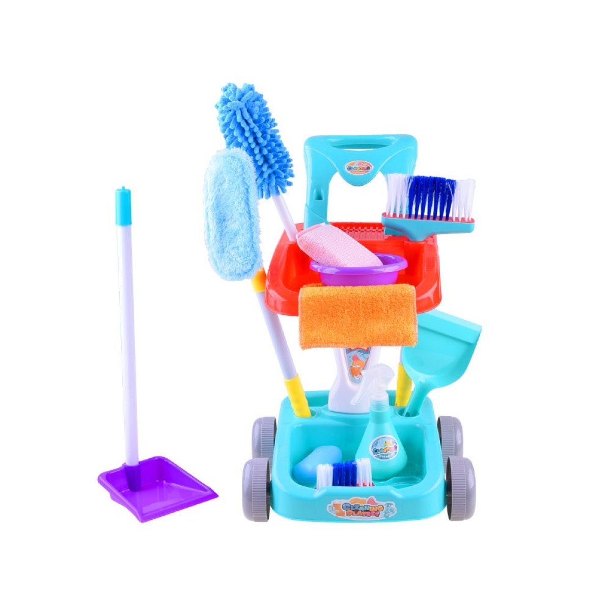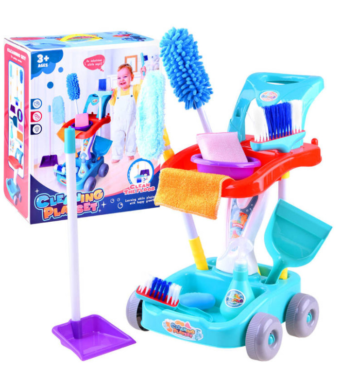 Professionaalne koristuskomplekt, mis hõlbustab korrashoiu säilitamist. Käruga koos riiulite ja varustusega võimaldab lastel õppida koristamist ja omandada korrashoiu harjumust. On teada, et segadus ei kao iseenesest, kuid oleks imeline, kui see juhtuks ise.