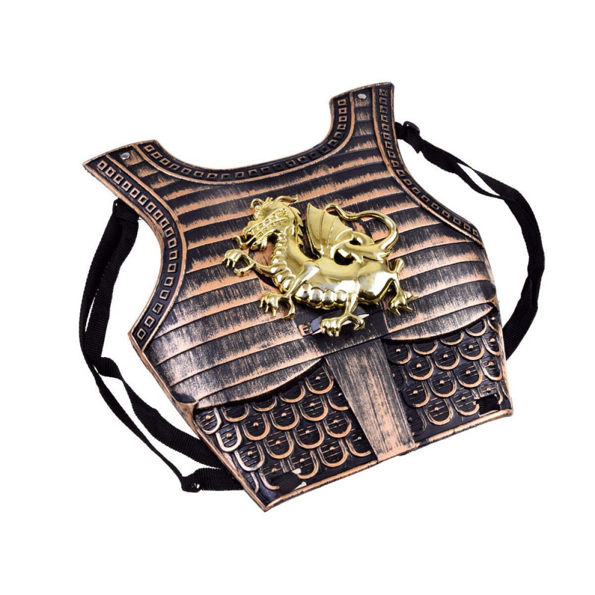 Rüü on valmistatud plastist, ohutu ja kaunilt kujundatud kuldse draakonivapiga. Rindkerele mõeldud elemendid on professionaalselt vormitud ja varustatud reguleeritavate rihmadega. Rüü värvus on vana kulla toonis. Komplektis olevad nooled on varustatud silikoonist imikute ja sulgedega. Rüü on pakitud kartongpakendisse. Kauplus Jokomisiada pakub laia valikut rüüsid ja mõõku väikestele rüütlitele.