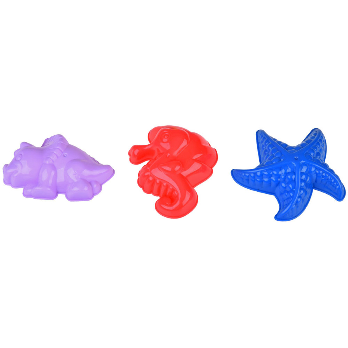 Komplekt sisaldab kolm vormi, mille kujundid meeldivad igale avastajale! Jutt käib dinosaurusest, merihobust ja meretähest. Kuid see pole veel kõik! Kui ämbrit täis liiva panna ja ümber pöörata, moodustab see suurepärase torni! Pannes mitu ämbrit kõrvuti, saame lõpuks muljetavaldava suurusega lossi.